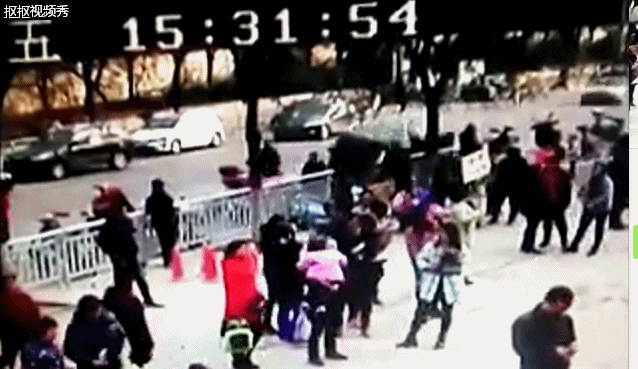 郑州奔驰SUV突然冲向接孩子人群 市民愤怒砸车