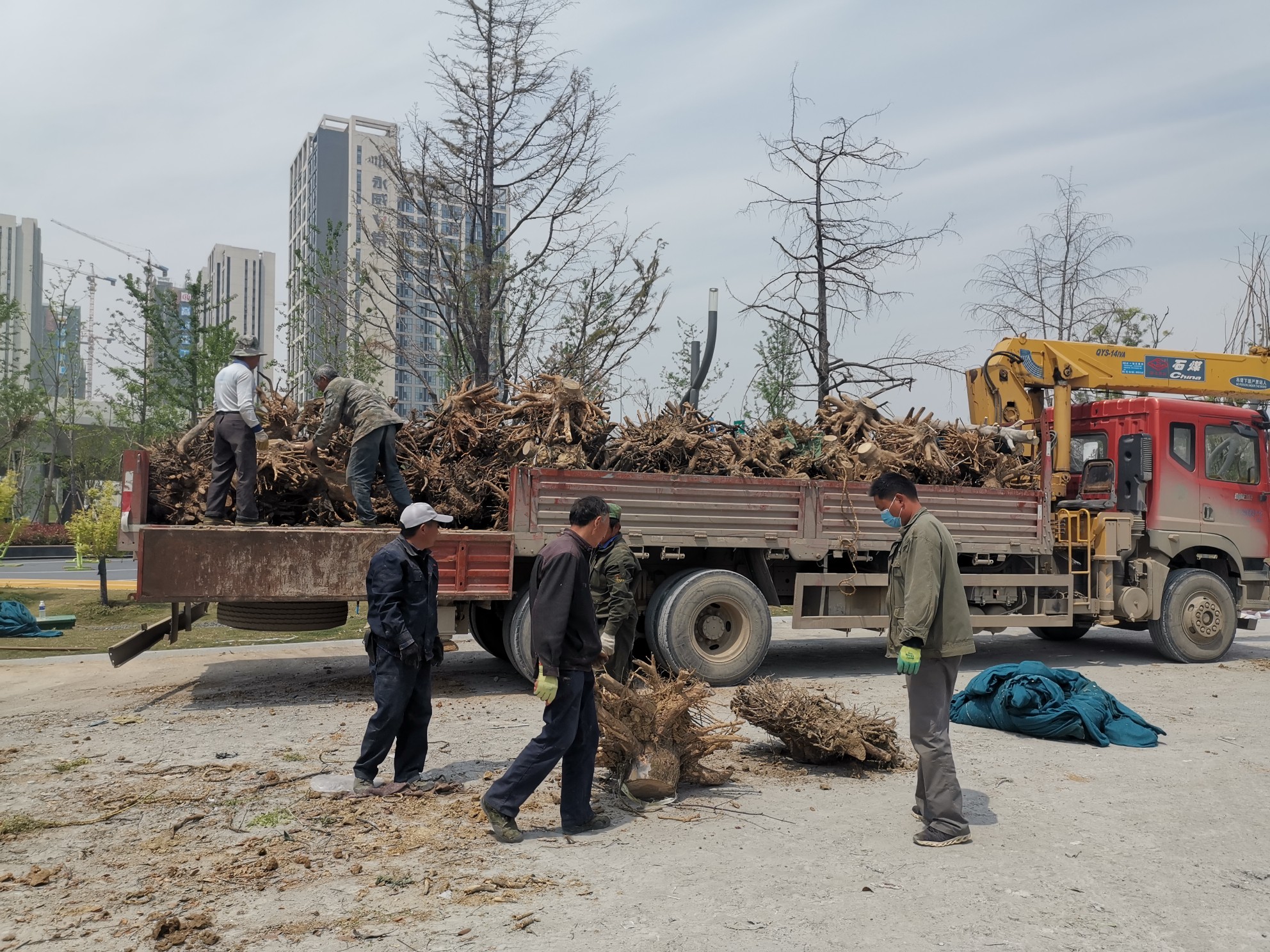 据现场一名工人告诉记者,他们正在处理的树根就是周围绿化带里干枯死亡的绿化树根,已经清运了两三车。这些绿化树确实是在去年栽种的,因季节问题,所以出现了不少干枯死亡。另外,这些绿化树是奥林匹克体育中心项目建设单位栽种的,之后应该会进行补栽。