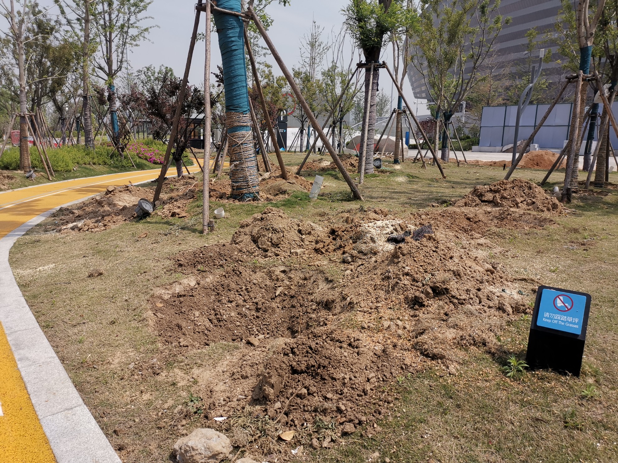 对此,采访中,有市民质疑,如果这些干枯死亡的绿化树一颗最少上万元,现场被挖开的树坑约有百余个。那么,这些损失该由谁承担,项目建设单位又是否会进行补栽?