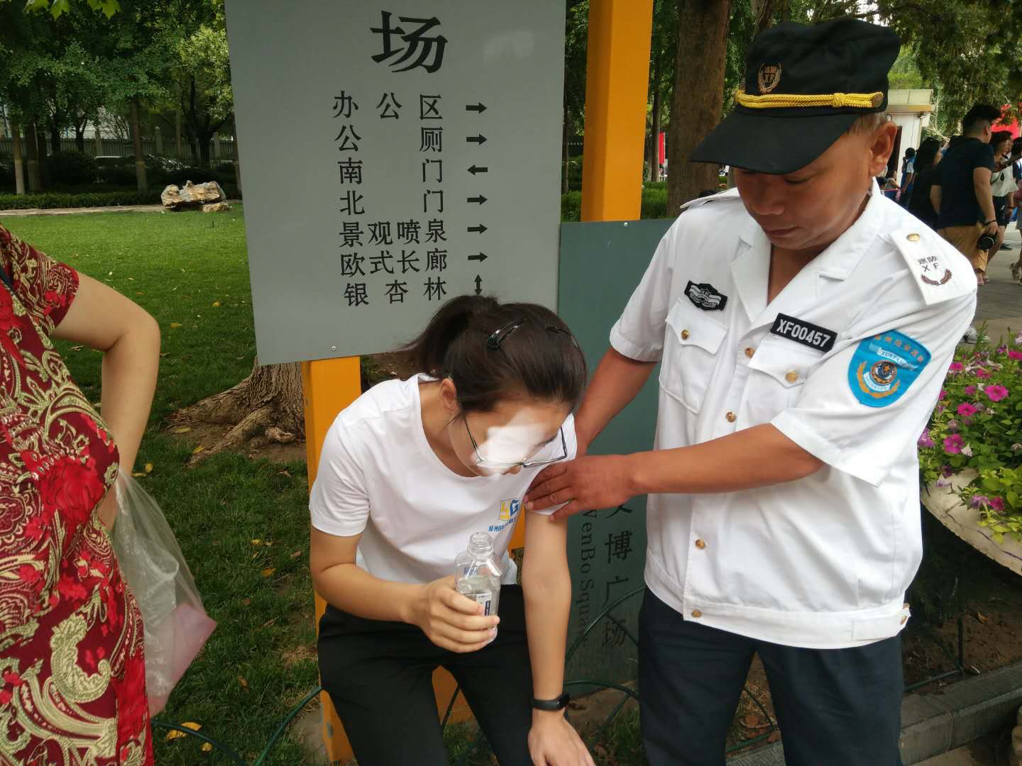 6月21日上午9时许,郑州市金水区文化路街道办事处巡防队员王林勇、李西、王宝伟三人,在农业路文博广场上举行的“红色爱心传递”活动上负责巡逻时,突然发现有一名年轻的女子晕倒在地上。三人迅速上前把女孩扶起,搀扶到旁边的椅子上让她休息。经询问得知,女孩早上没有吃东西导致低血糖晕倒。