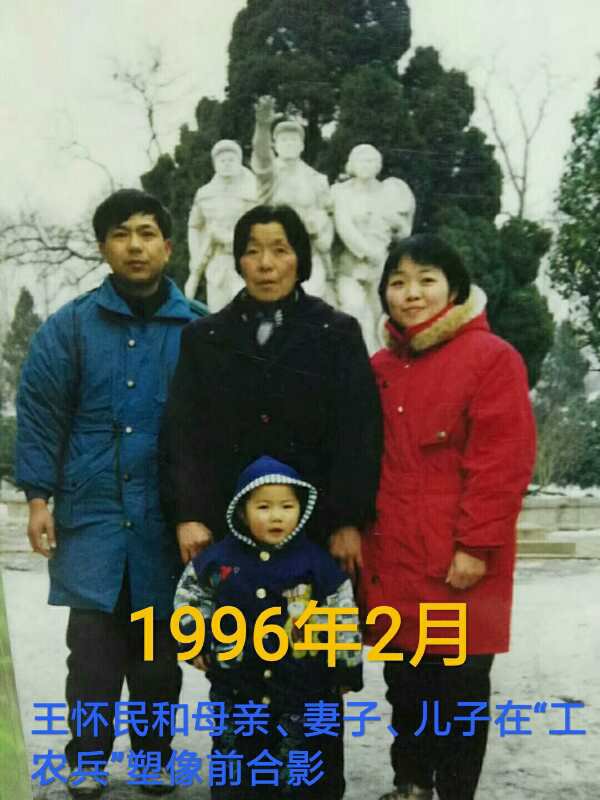 不过,他家里还有几张彩色照片。那是1996年2月,他和自己的家人在人民公园“工农兵”塑像南侧的留影。他说,这一次是用自己的照相机拍的。