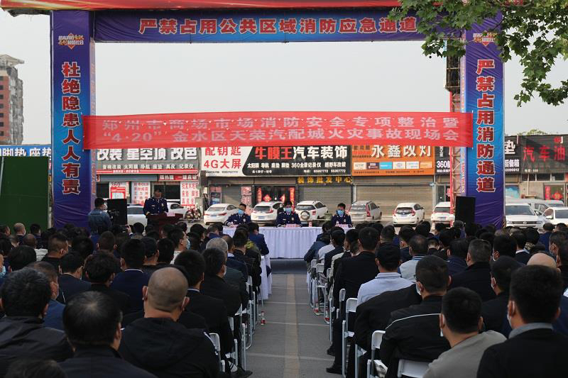 4月22日下午,郑州市政府组织召开集中约谈会,“以案为鉴、以案促改”,专题部署商场市场消防安全专项治理工作。记者注意到,此次约谈会的会场设在天荣汽配城火灾事故现场。来自郑州市消防、商务、市场发展中心、各县区等相关部门的有关负责同志共300余人参加会议。