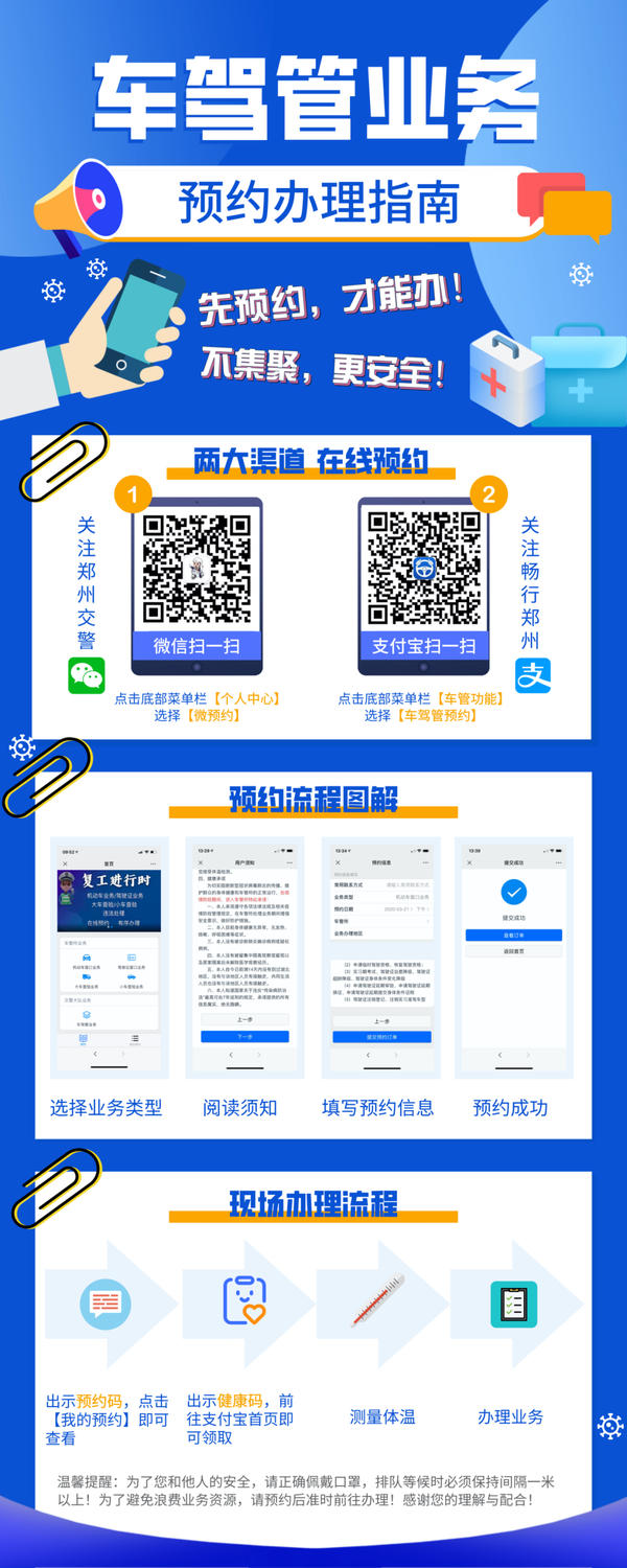 需要注意的是,车驾管业务需要先通过郑州交警微信号进行预约。附预约方式: