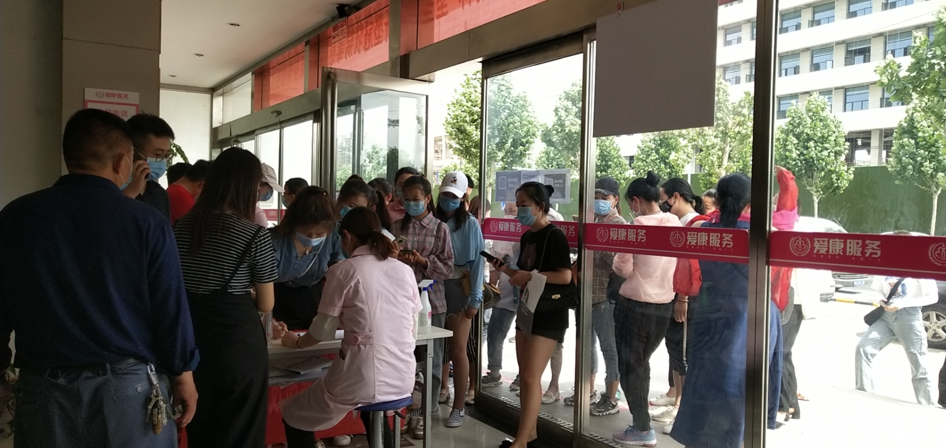 惠济区婚姻登记处楼上是保健所,5月27日下午,前来办理离婚登记的当事人和前来体检的群众在门口排队。