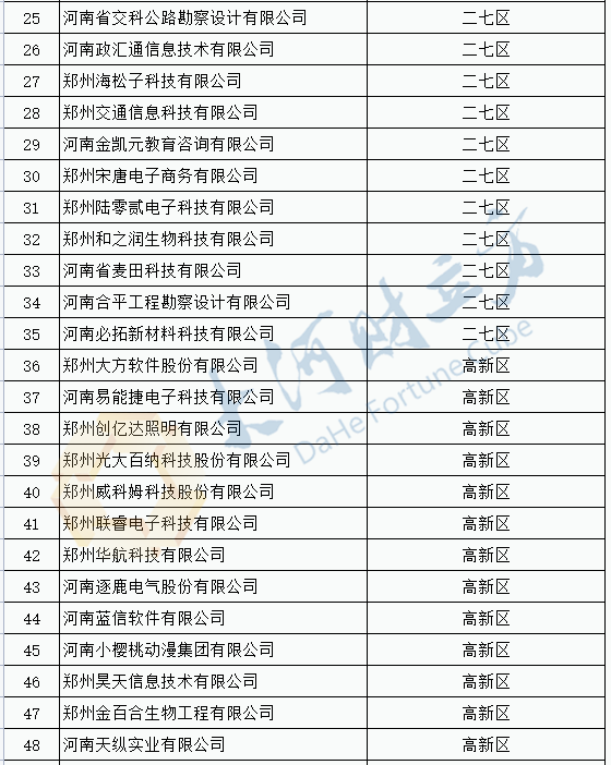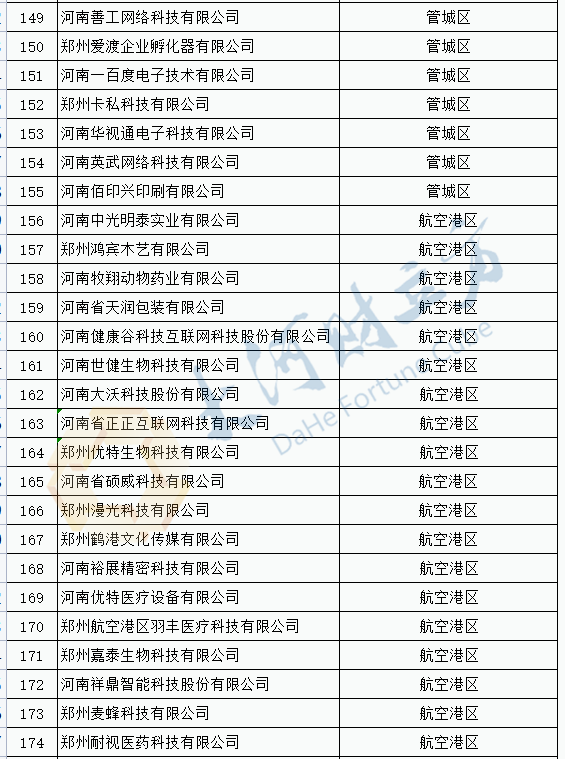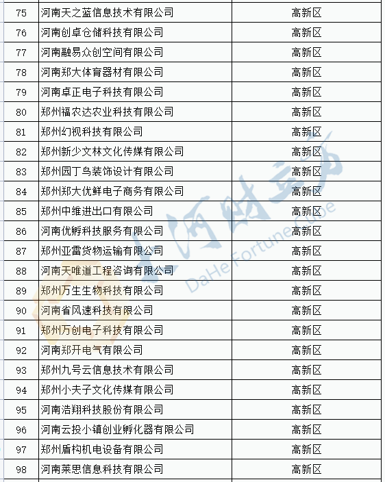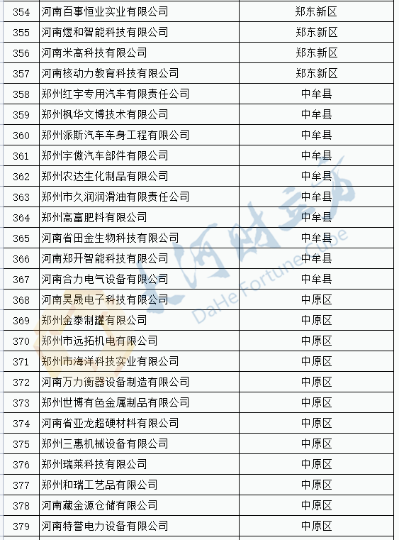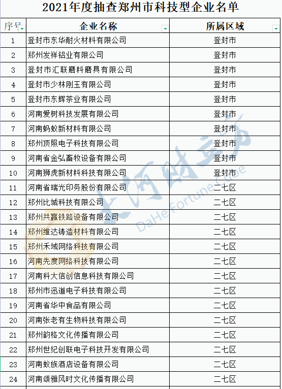 2021年度抽查郑州市科技型企业名单