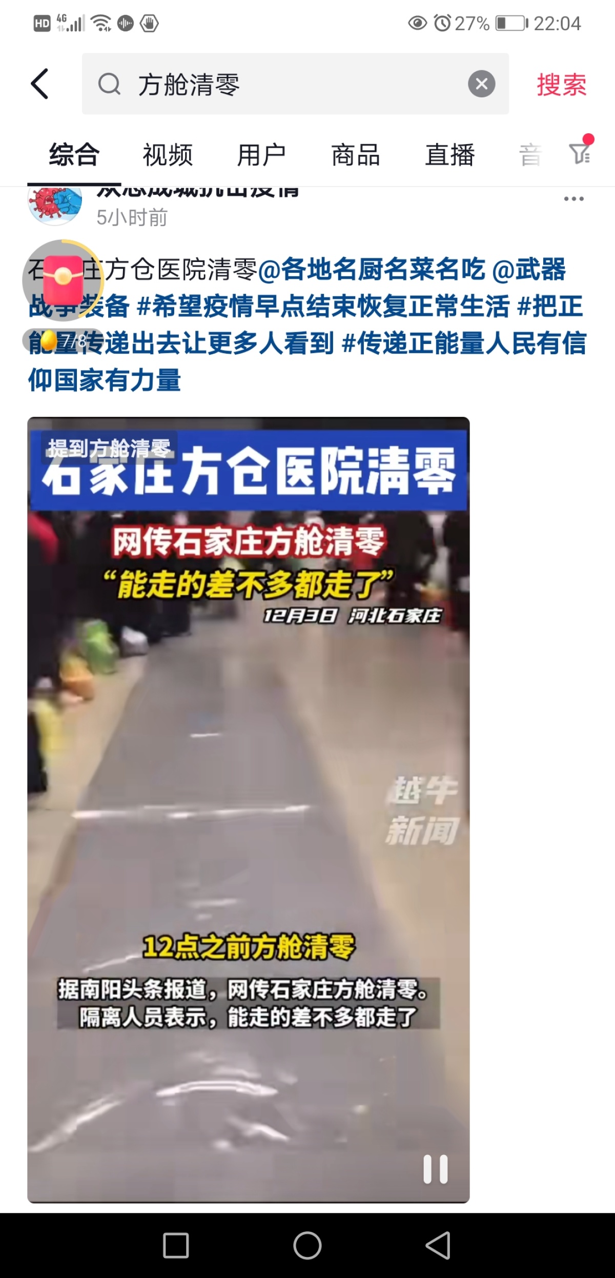 12月4日晚,一则内容为“12月4日,郑州方舱今晚12点要清零”的视频,在网络和朋友圈中疯传。当晚,大河报·豫视频记者向郑州市相关部门求证:该消息是假的,请大家不传谣,不信谣!