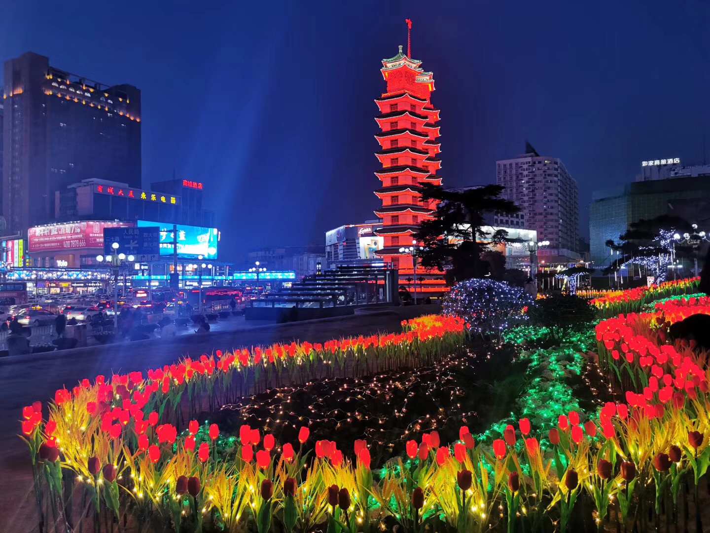 二是灯光设计精心,要求一街一景,融入中国年的元素和郑州地域文化符号。如二七区对采用红色灯具与花卉灯具等对二七广场和广场游园进行亮化,既突显红色二七精神的引领,又是人民群众美好生活的真实写照。