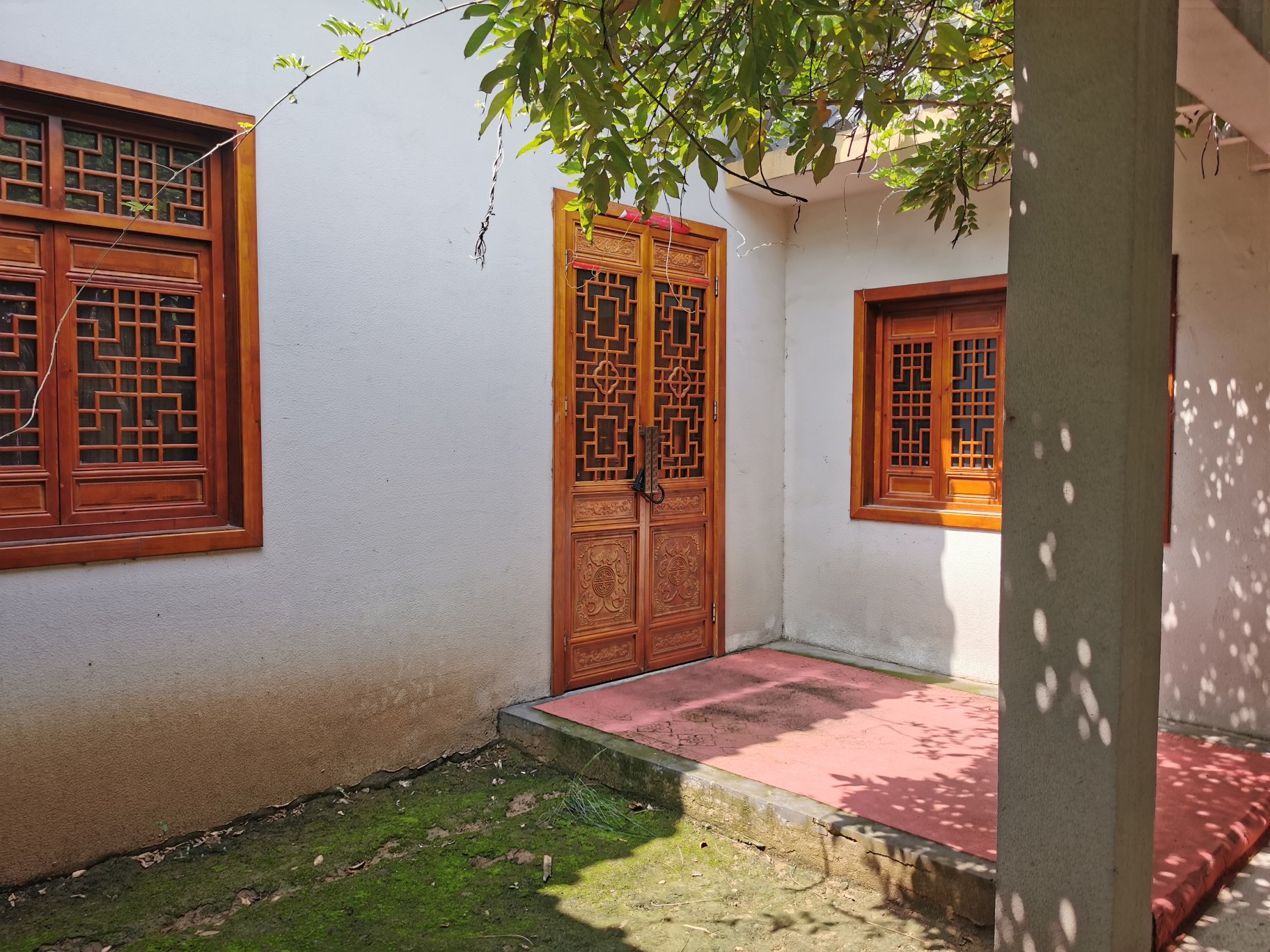 古铜色的木质雕刻门窗,亦是紧闭,房间里面拉起窗帘,从窗外,看不到里面的情况。