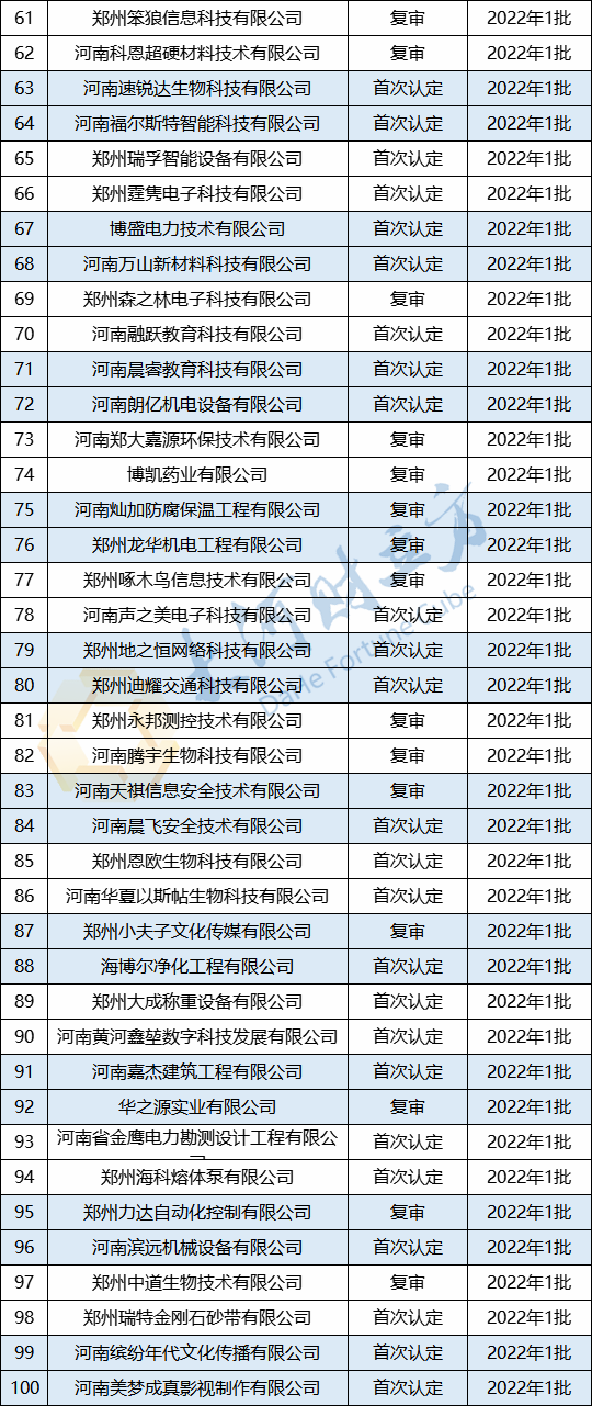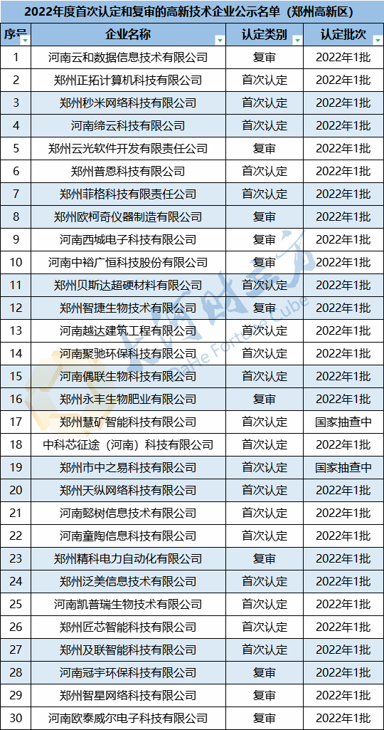 【大河财立方消息】2月10日,郑州高新区管委会创新发展局科技办公室对2022年度首次认定和复审的高新技术企业名单进行公示,公示期为3个工作日。