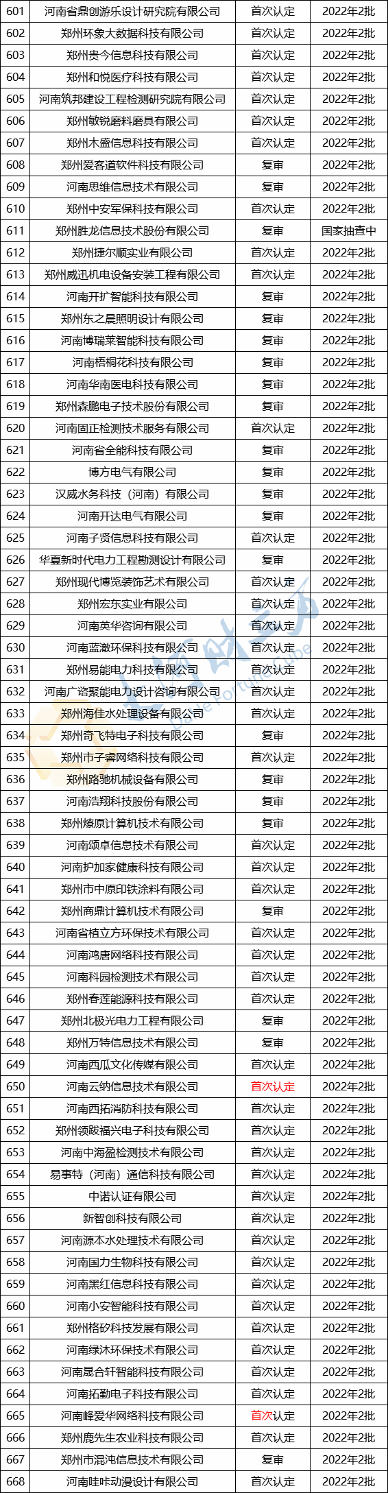 名单显示,河南云和数据信息技术有限公司、郑州正拓计算机科技有限公司、郑州秒米网络科技有限公司等668家公司在列。