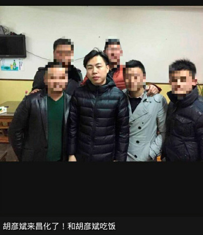 5月5日,有网友晒出去年圣诞节在昌化镇一饭馆与胡彦斌的合影,当时郑爽也正在昌化镇拍摄《相爱穿梭千年》。