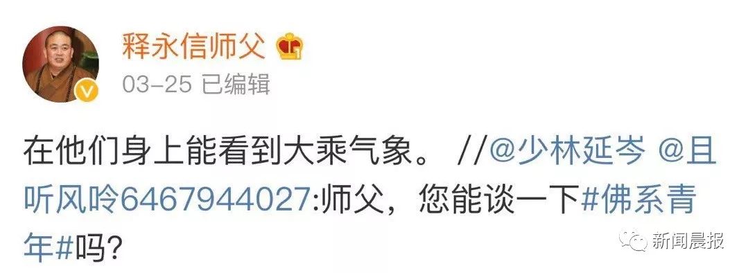 这一开微博不要紧,网友的问题随之而来。师父,您能谈一下佛系青年吗?