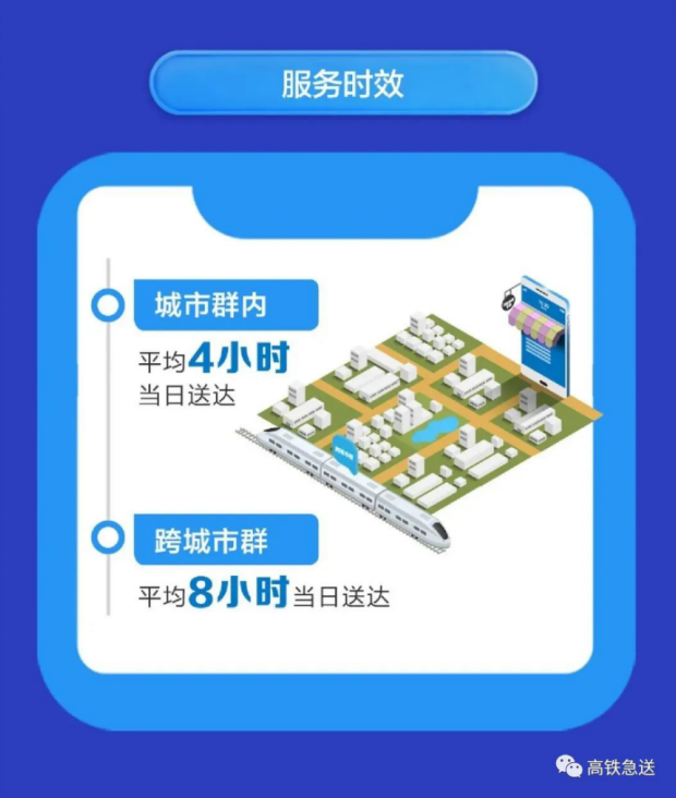 据了解,“高铁急送”充分发挥成网运行、智能绿色、便捷高效、稳定可靠的优势,在国内主要城市间,以高速铁路上的载客动车组列车为主要干线运力,高效衔接同城取送货骑手,提供跨城“门到门”当日达服务,主要服务于商务函件、标书合同、生鲜礼品、贵重物品、急用药品和个人物品等有紧急运输需求的客户。