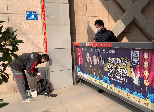 此外,快递小哥也没歇着,在金水区乾坤花园小区门口,记者看到,一位居民需要寄一批口罩到外地,就找了快递小哥上门收快递,两人隔着道闸“交易”。