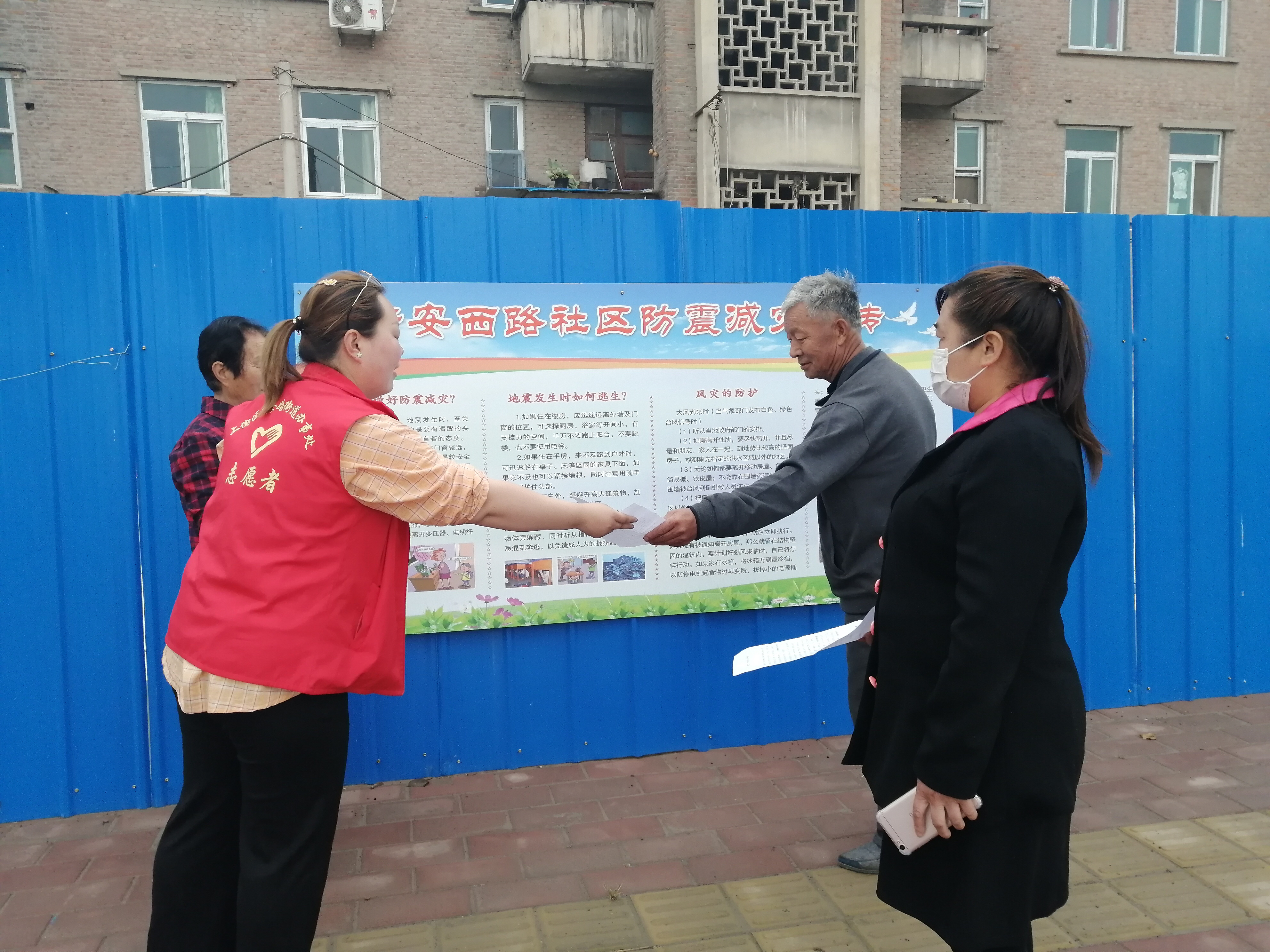 “5.12防震减灾日”来临前夕,为提高居民防灾减灾能力,增强居民防灾减灾意识,进一步提高居民对灾害自救互救常识,充分发挥社区在“防灾减灾”工作中的积极作用,5月9日上午,郑州市上街区新安路街道新安西路社区开展了“防震减灾,提高自救能力”为主题的防震减灾科普宣传活动。