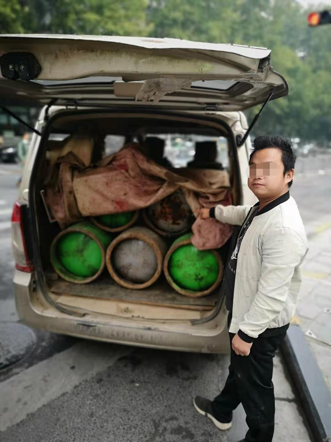 10月21日,郑州交警一大队民警在执勤过程中查获一辆私拉液化气罐的面包车,及时消除了交通安全隐患,当事人兰某某被移交至属地派出所做进一步处理。