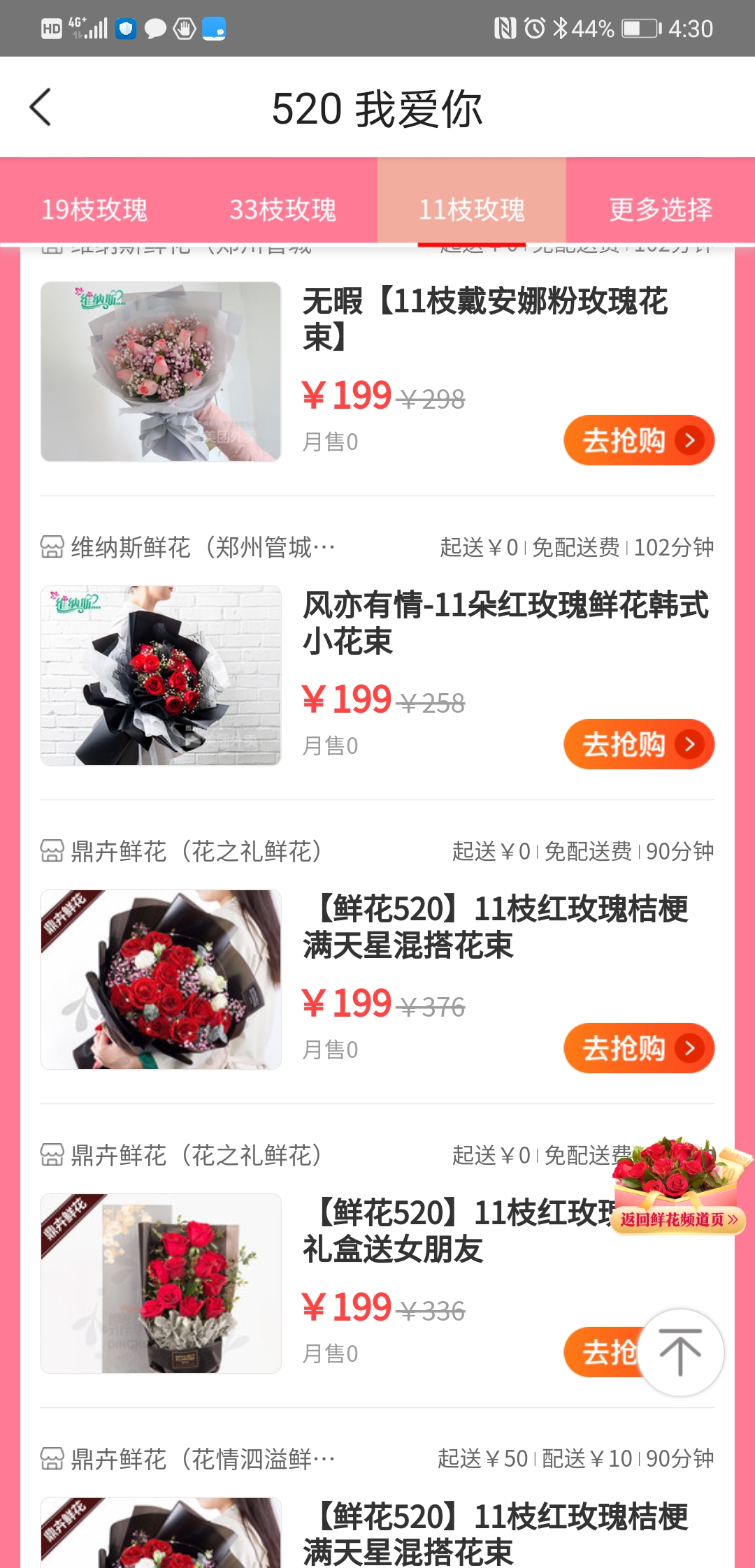 此外,记者通过网络查询发现,从5月18日起,多个网络平台已经开始520网络情人节订花优惠活动,如:美团、爱上鲜花、优选鲜花等网络平台,但部分网络平台的订单数量并不多,甚至有不少网络商家的优惠活动月销数量仍是零。