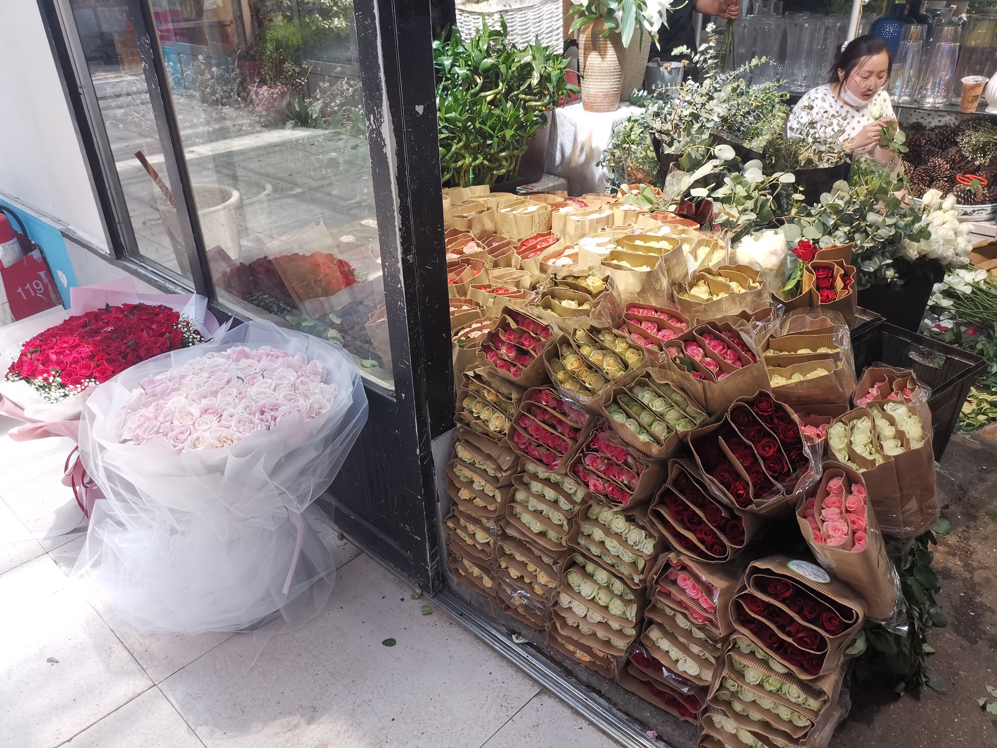 据其中一位店主介绍,因为疫情,3月8日国际“女神节”没有过,他们也没有复工,所以鲜花生意受到了很大的影响,他们想借助这次5月20日的网络情人节让鲜花市场重新“火”起来!