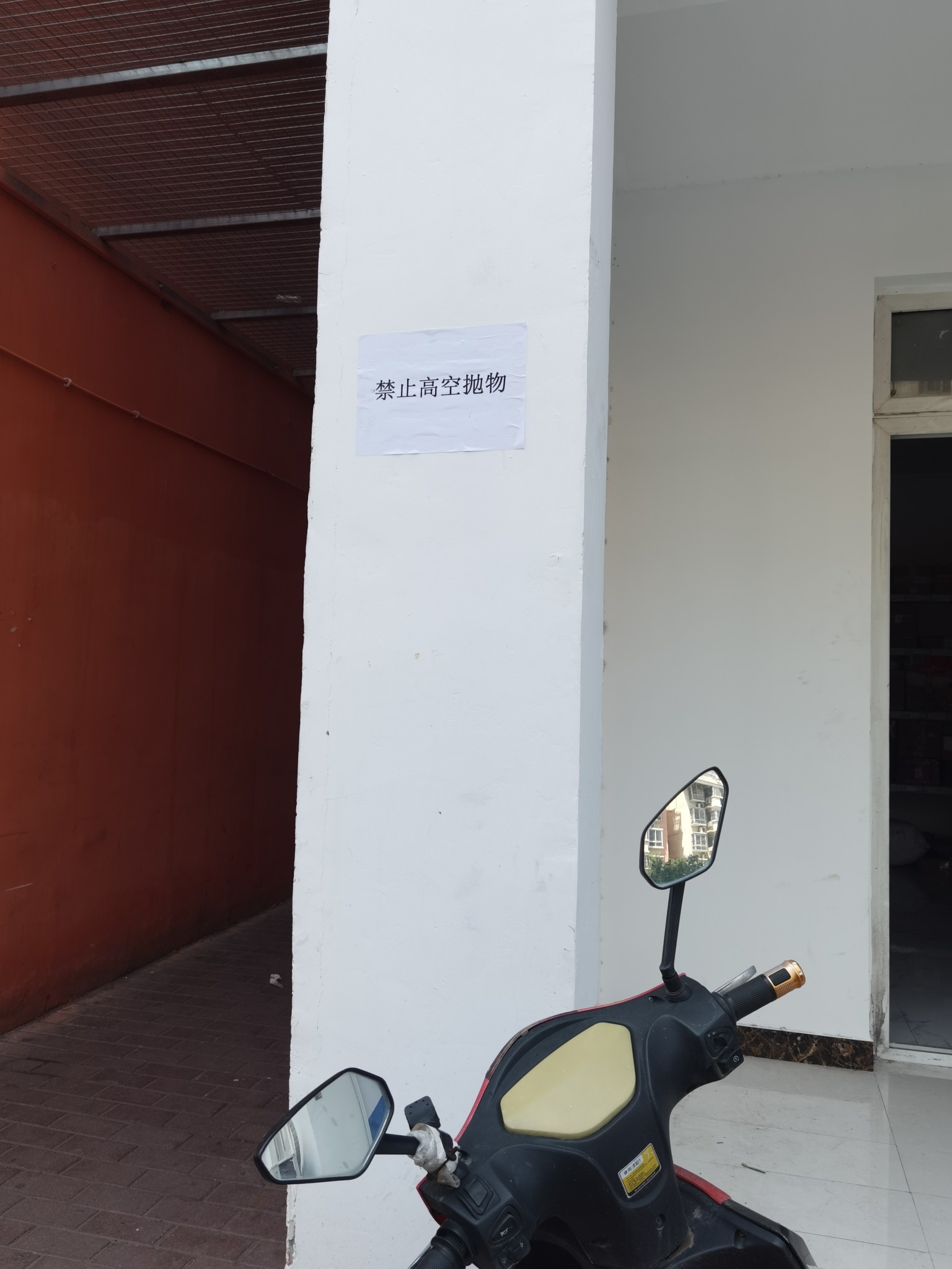 记者看到,这栋楼20多层,楼前贴着一张A4纸、白底黑字打印的安全警示标语“禁止高空抛物”字样。
