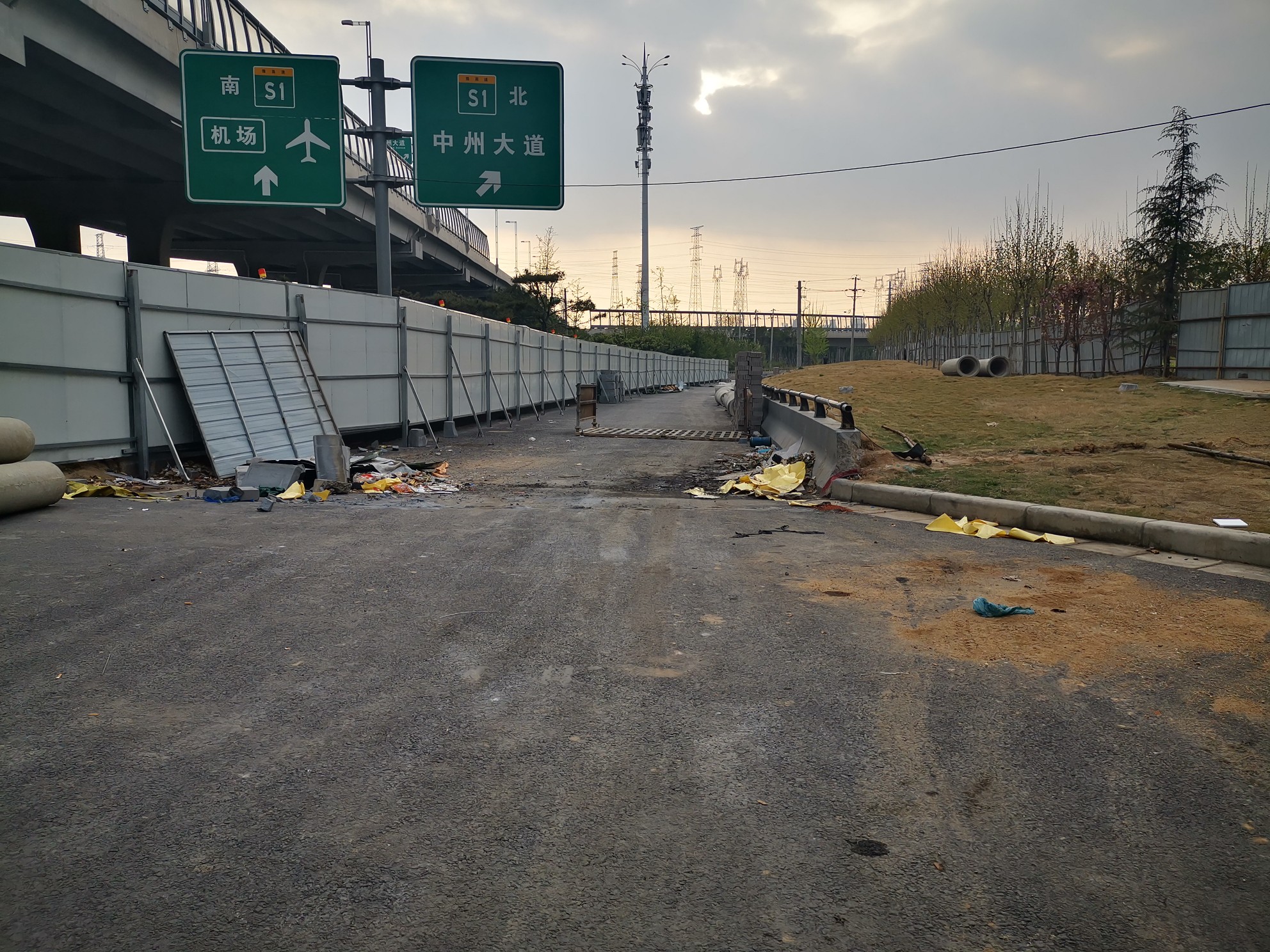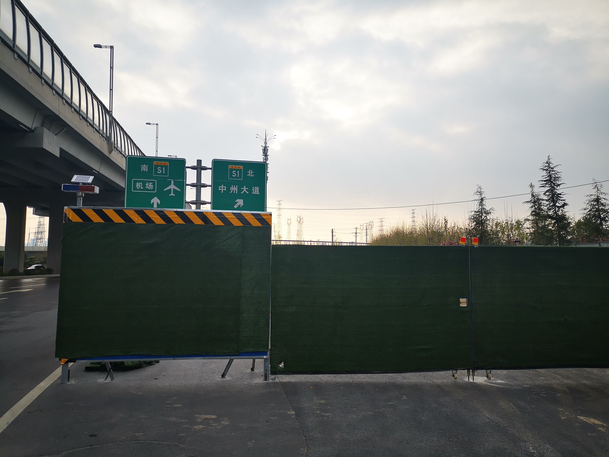 3月30日,大河报·大河客户端记者按照刘先生的指引,来到南三环与机场高速交叉口。记者开车沿南三环由东向西行驶,路边右侧出现一个匝道口和交通指示牌,该匝道口指示牌显示,继续沿南三环向西,可达到机场高速S1向南方向,而该处的匝道可通往机场高速S1向北方向的中州大道。不过,匝道口被围挡围了起来,暂时并未开通。