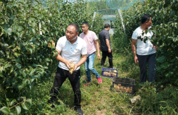 果园里,烈日炎炎,无风,温度很高。一边是马海州忙着摘梨,另一边是柿园村书记马德福带领几名村干部现场在帮忙摘梨、卖梨。