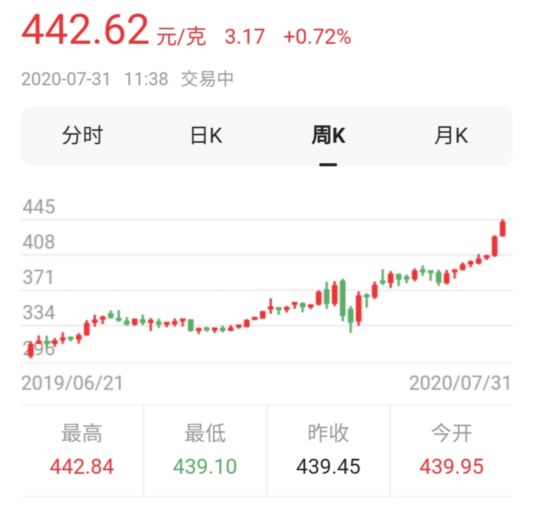 截至7月29日,以美元计价的黄金价格已上涨了29%,以人民币计价的黄金上涨了25%。