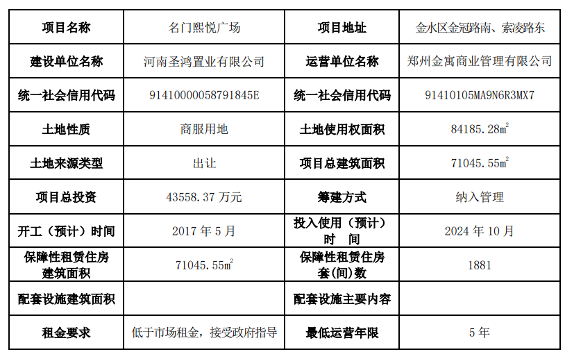 【大河财立方消息】 7月25日,据郑州市住房保障和房地产管理局,市保障性租赁住房工作领导小组办公室日前新认定名门熙悦广场为保障性租赁住房项目。