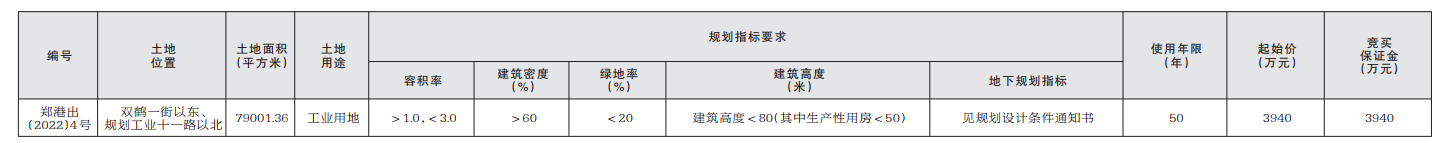 【大河财立方消息】5月11日,经新郑市人民政府、郑州航空港经济综合实验区(郑州新郑综合保税区)管理委员会批准,新郑市自然资源和规划局、郑州市自然资源和规划局郑州航空港经济综合实验区分局决定以挂牌方式出让郑港出〔2022〕4号国有建设用地使用权。